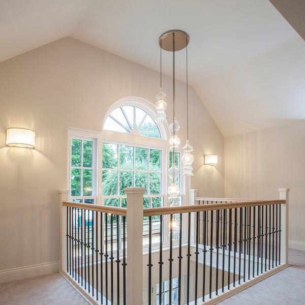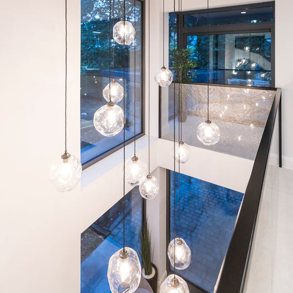 We offer a range of tailored options to suit your space — from compact stairwells that suit 3–5 pendants, to double-height entrances and larger hallways that call for a bold, dramatic centrepiece.