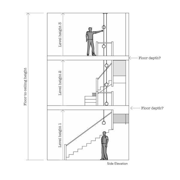 Let us know the total height from floor to ceiling, as well as the height between each level if the space spans multiple floors.