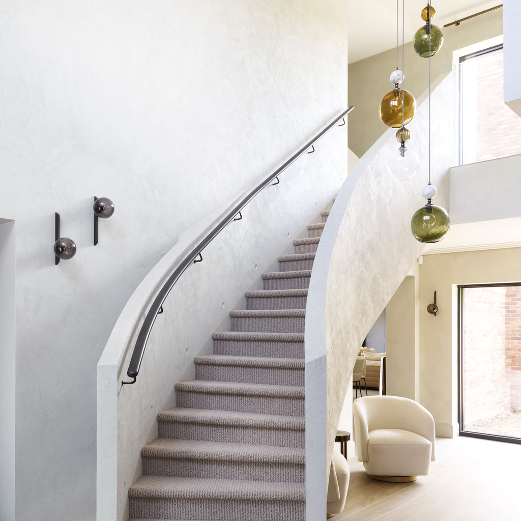 These suspension pendants are a playful collection that combine two simple spheres, mixing colour and texture. Bring your space alive and add some pattern with our selection of finishes. We have selected the most popular combinations but please feel free to request your own design using our custom quote form here. Lead time 6-8 weeks. As standard, this item comes with a 1.5M flex length and an E27 80mm Globe bulb. (No bulb supplied for USA/Canada)